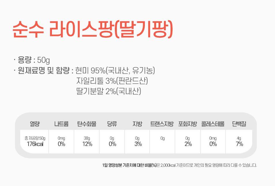 "기름에 튀기지 않고 현미를 열로 팽창시켜 만들었어요. 생딸기 분말이 들어가 딸기의 달콤한 향과 분홍빛이 더해졌답니다.