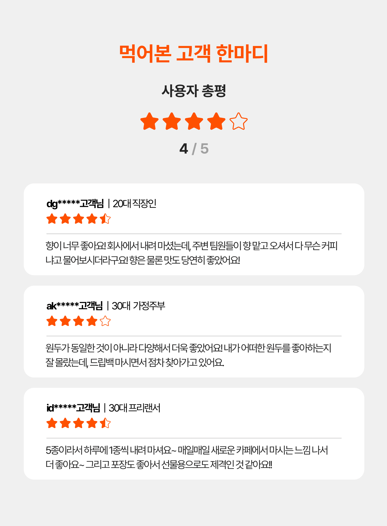 엄선한 로스팅 원두를 그대로 담은 이코브루 드립백 5종