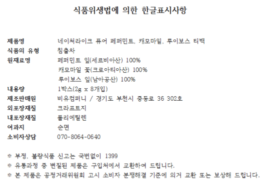 무형광 인증을 받은 100% 순면으로 티백을 제작했어요. 뿐만 아니라 제품에 사용된 모든 종이는 친환경 용지만을 사용하고 있습니다.