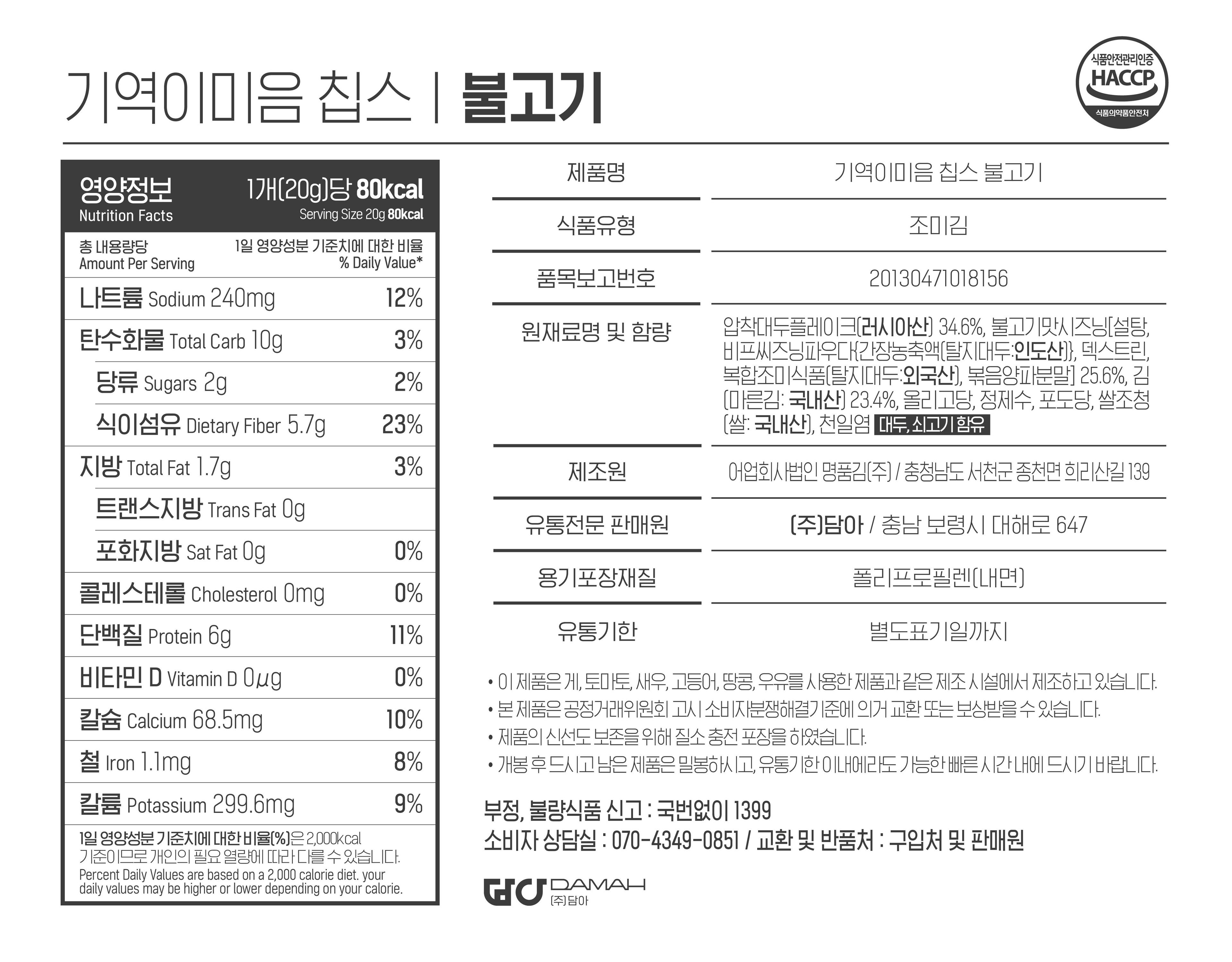 불고기칩스 : 대두 플레이크와 달콤 짭짤한 불고기맛