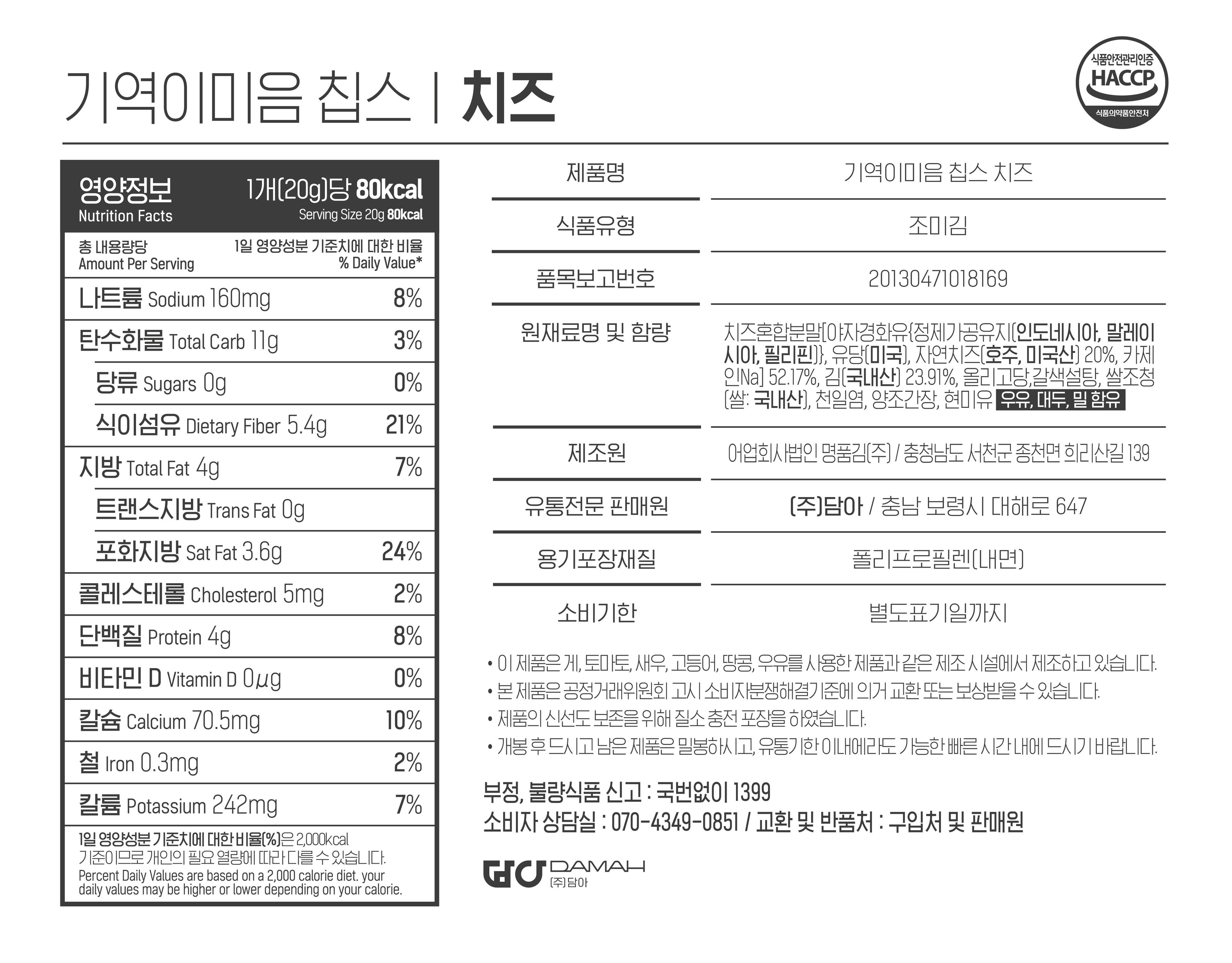어니언칩스 : 담백한 치즈와 멸치가 더해진 달콤한 양파맛