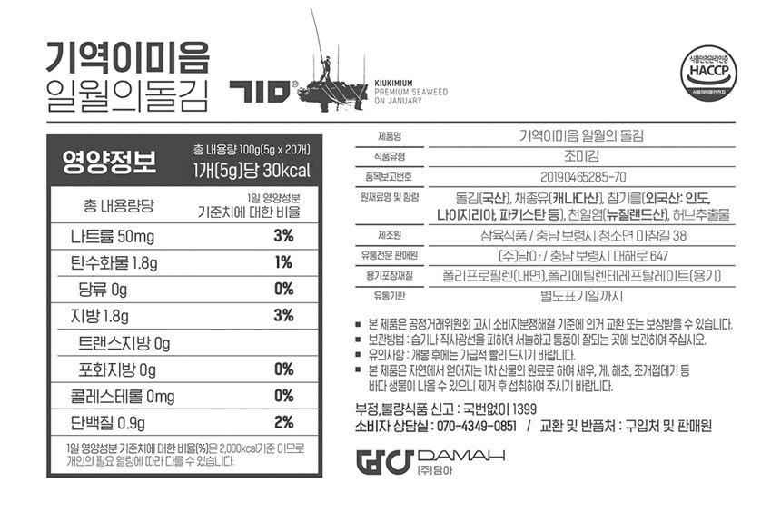 나트륨과 기름 함량을 줄인 프리미엄 저염김일월의 돌김 1박스