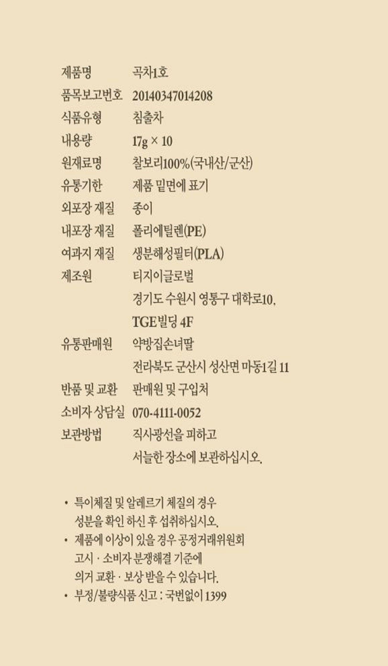 태우지 않은 깔끔한 보리차 약방집 손녀딸 곡차 3종