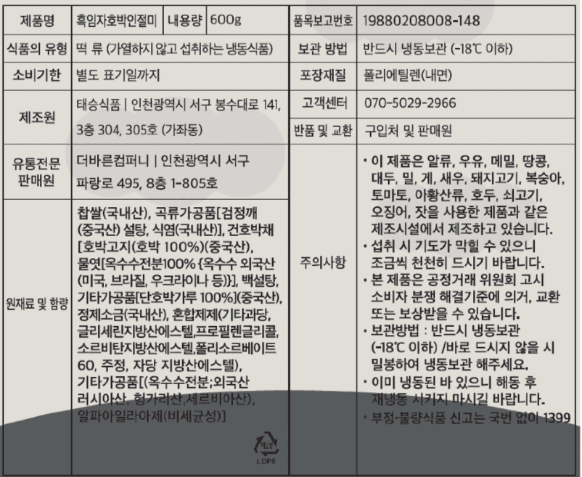 주문 즉시, 생산에 들어가는 더바른의 흑임자 호박 인절미는 100% 국산 찹쌀과 함께 만들어 쫀득하면서 쫄깃한 식감과 함께 은은한 호박의 단맛을 느낄 수 있어요. 호박고지, 호박 천연분말로 빚은 호박 인절미에 당일에 볶은 흑임자 가루를 묻혀 고소함까지 더해졌답니다. 또 한 입 크기로 잘려있어 아침 식사, 간식 등으로 먹기에 좋아요. 냉동 보관했던 떡은 상온 2시간 해동 후에 먹으면 떡의 쫄깃하고 쫀득한 식감과 맛을 더욱 잘 느낄 수 있습니다. 떡의 포장 또한 국내 유일무이한 책 컨셉의 감성 패키지로 떡을 받는 즐거움도 있답니다.