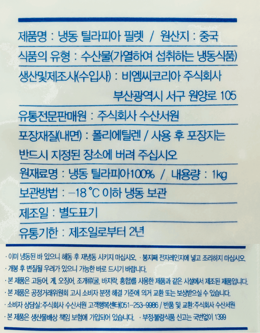 단백질 가득한 조리하기 쉽고 운동할 때 딱 좋은 생선 틸라피아 1.15kg