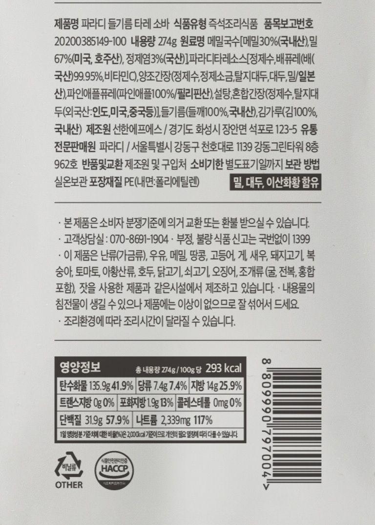 남녀노소 입맛 저격 취향 저격 들기름 타레 소바 1봉